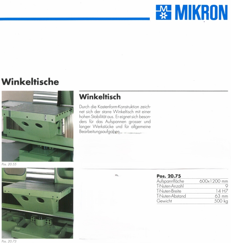 | Aufspannfläche 1200 x 600 ( x 500 ) mm | |