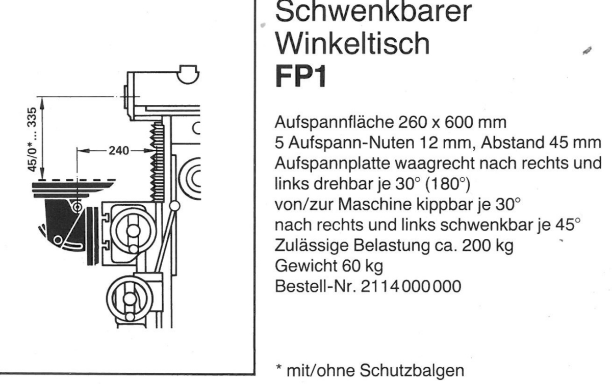 | Aufspannfläche 260 * 600 mm | |